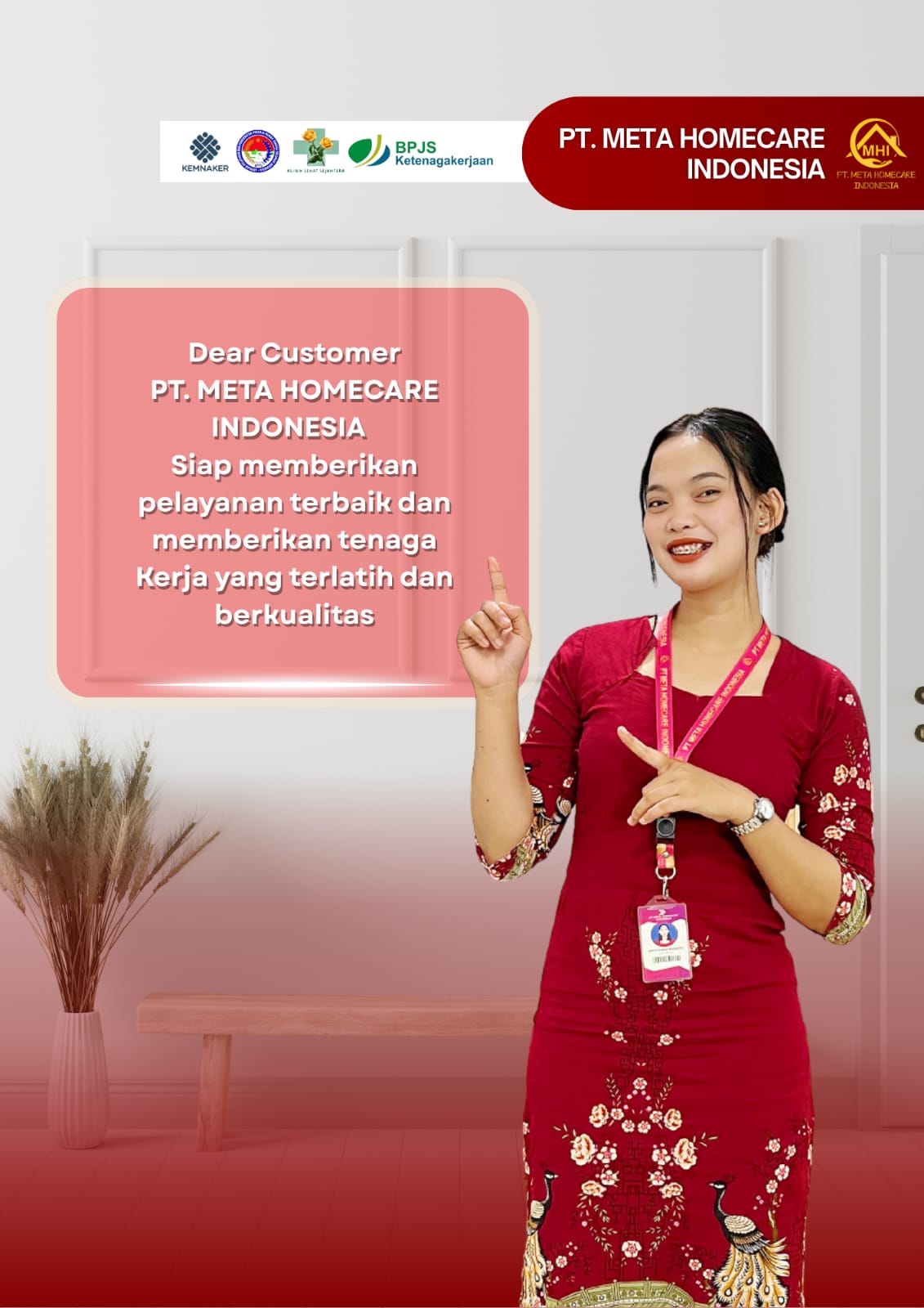 PT Meta Homecare Indonesia adalah lembaga pelatihan kerja terpercaya yang menscreening dan mendidik calon tenaga kerja menjadi tenaga kerja berkompeten dibidangnya, Kami juga merupakan lembaga yang bergerak dibidang jasa penyaluran dan penempatan pekerja meliputi: Asisten Rumah Tangga (ART), Perawat Lansia, Baby Sitter, Tukang Kebun, Sopir. Jasa & layanan terpercaya untuk wilayah Jakarta, Bogor, Depok, Tangerang, Bekasi dan luar pulau Jawa lainnya.